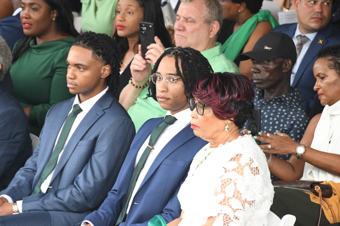 Prime Minister Dr Andrew Holness’s sons Andrew (left) and Adam sit with their grandmother Sonia at the head of Government’s swaering-in ceremony at King’s House on Tuesday. (Photo: Joseph Wellington)