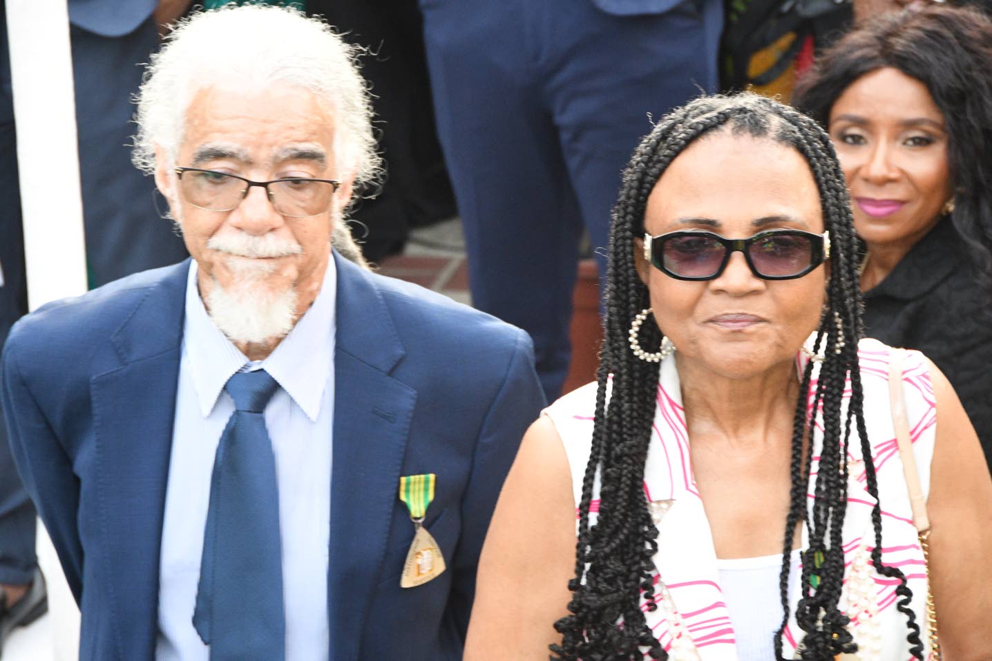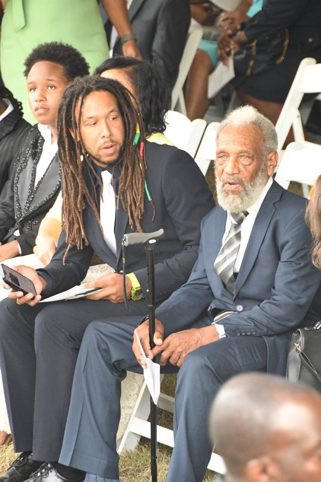 Prime Minister Dr Andrew Holness’s brother Kevin (left) and father Morris await the start of the swearing-in ceremony at King’s House in St Andrew on Tuesday. (Photo: Joseph Wellington)
