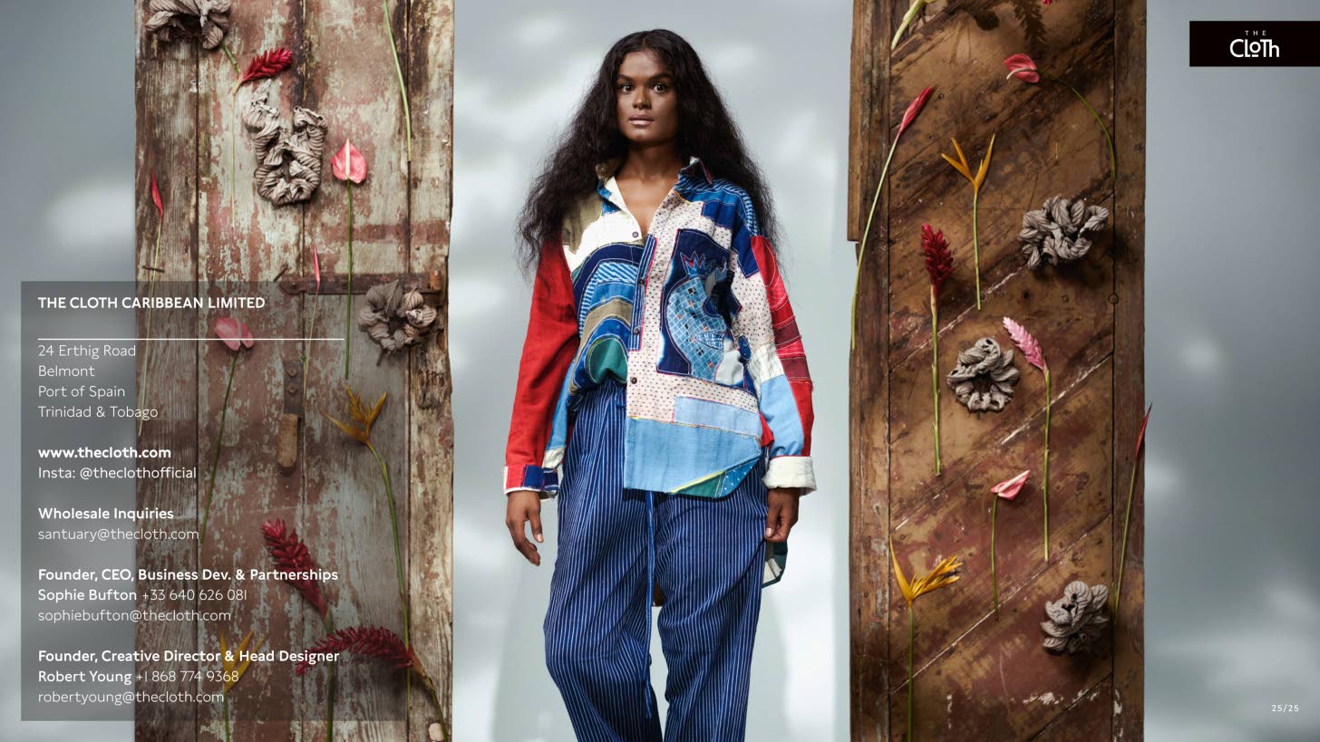 A Mapless Escape Women’s AW 24/25 Certified West Indian Sea Island Cotton grown in Barbados Designed in Trinidad & Tobago Made in the Caribbean The Cloth Caribbean Limited 24 Erthig Road, Belmont Port of Spain, Trinidad & Tobago Email: sanctuary@thecloth.com Photographer: The Fake Artist Stylist: Mark EastmanCollection Creative Director: Robert Young Editor: Sophie Bufton(Photo: The Fake Artist)