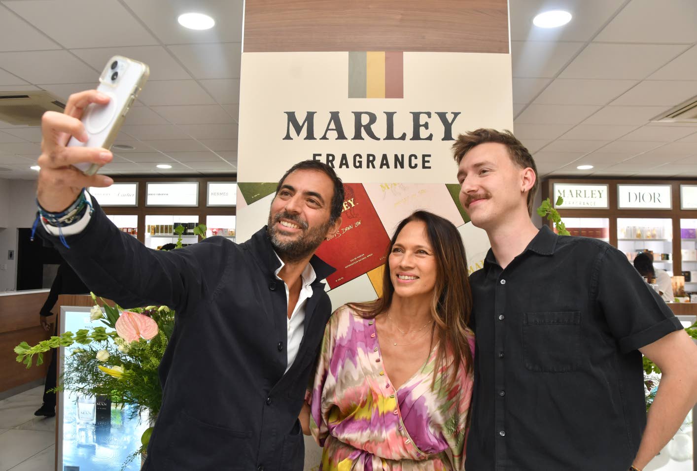 #MakeItMarley Bijoux Jamaica Marketing Manager Laura Morin joined Rise Distribution founder Jean David Sebaoun (left) and IMH Fragrance Product Development Manager Jonathan Pierron for an ussie. Naphtali Junior