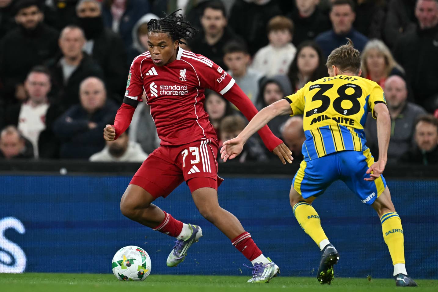 Liverpool’s English striker Rio Ngumoha (left) vies with Southampton’s Danish defender Elias Jelert during the English League Cup third-round football match between Liverpool and Southampton at Anfield in Liverpool, north-west England, on September 23, 2025. (Photo: AFP)