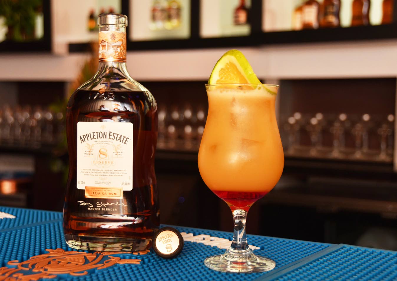 Appleton Estate Sunrise made with • 1/4 oz grenadine •1/2 oz lime juice • 4 oz orange juice •1/2 oz simple syrup •1.5 ounces of Appleton Estate 8-Year-Old Reserve Blend •Slice of orange for garnish (Photo: Naphtali Junior)