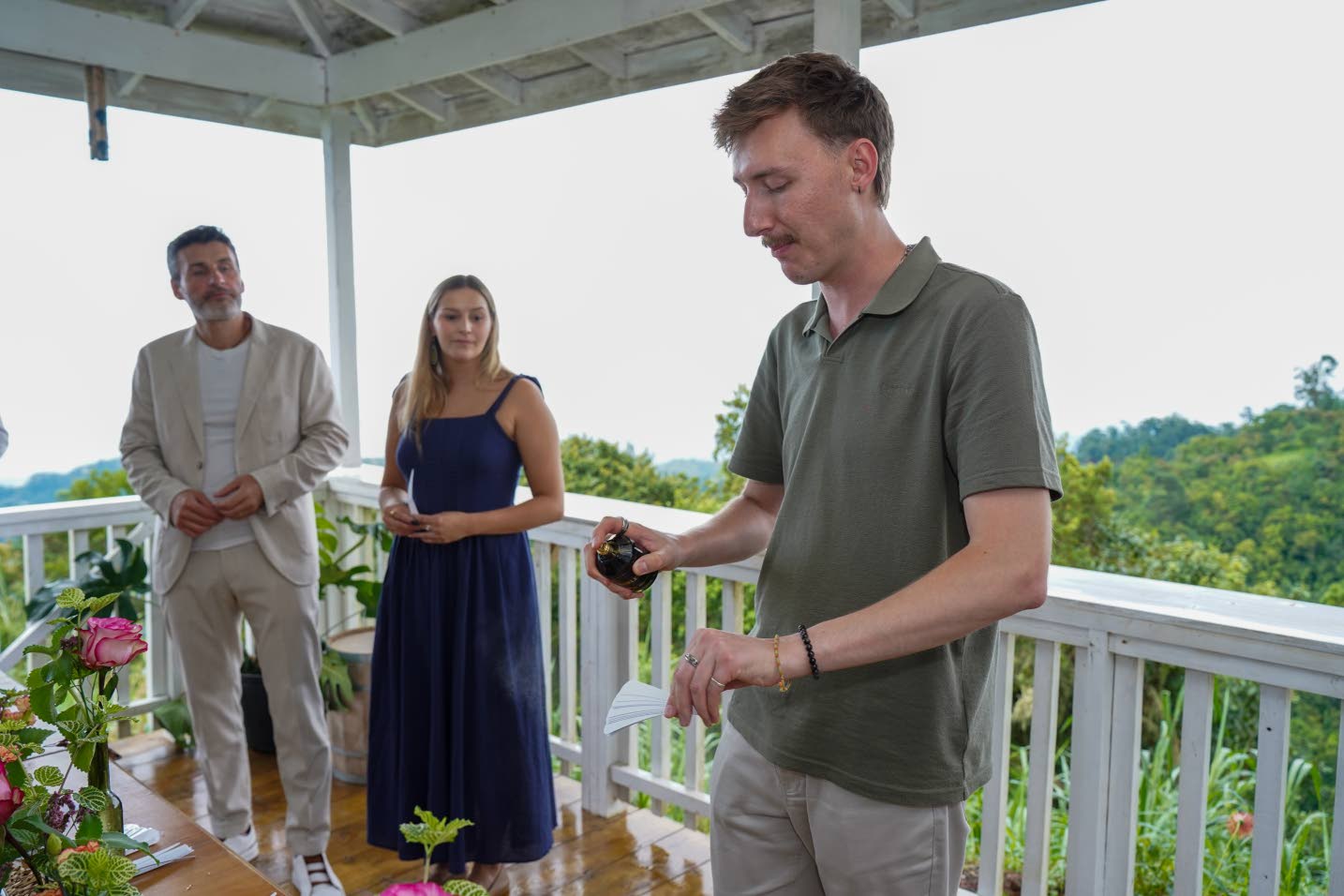 Wave the scented strip under your nose, keep it at least an inch or two away, take a moment to pause, close your eyes, and inhale. Mystique Integrated Services Chairman & CEO Valon Thorpe and Maytee Martinez followed the instructions of the fragrance experts carefully. (Photo: JRoyal Productions)