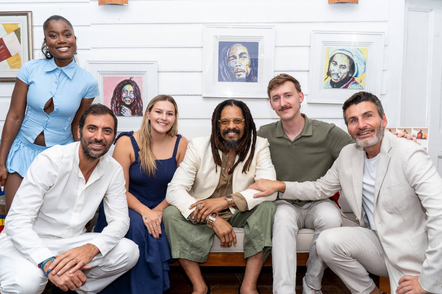 The immersive fragrance experience was led by (from left) Rise Distribution founder Jean David Sebaoun; IMH Fragrance Product Development Manager Jonathan Pierron; senior perfumer for DSM-Firmenich and the nose behind the Marley Place of Peace Eau de Parfum Clement Gavarry, and DSM-Firmenich Fragrance Development Manager Rachael Larsen. Also photographed are Rohan Marley’s assistant Max Miller and Mystique Integrated Director of Operations Kathryn Davis. Photos: Karl Mclarty & JRoyal Productions)