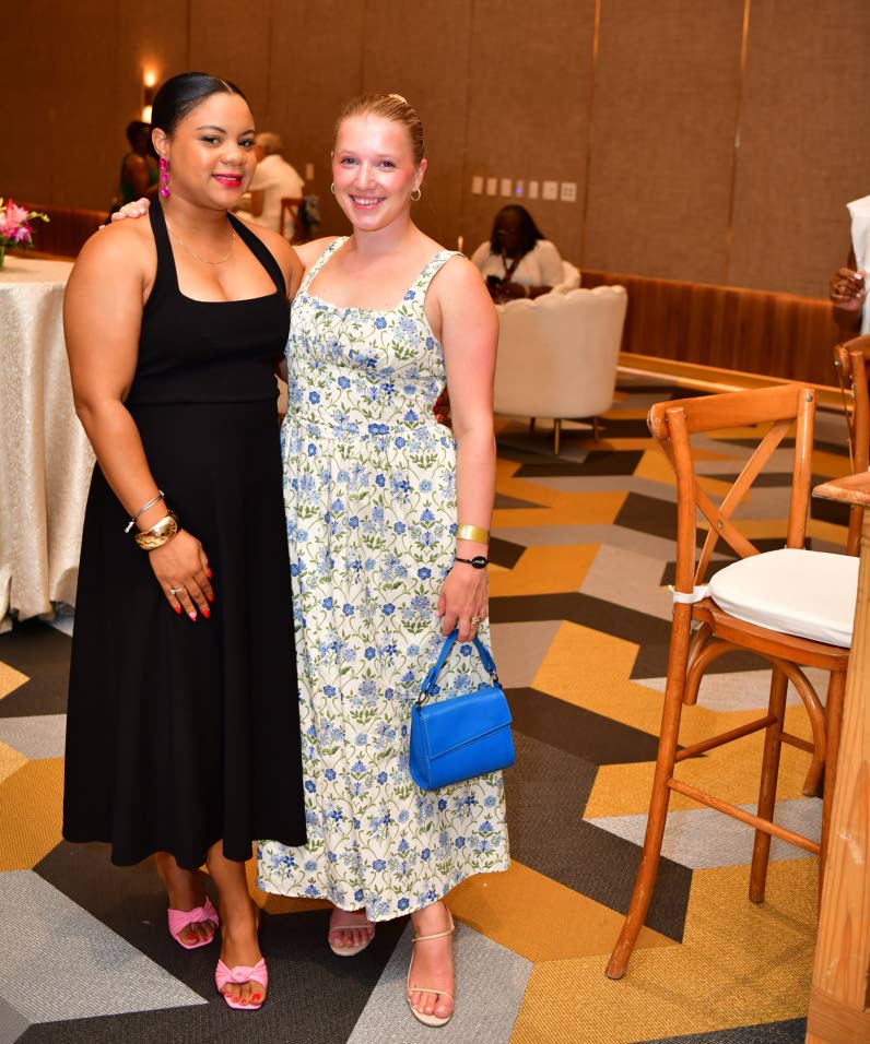 Sharing the frame were Candace Thomas (left), executive assistant, JTB, and Marley Barnes-Weber Shandwick, media relations manager. (Photo: Aceion Cunningham)