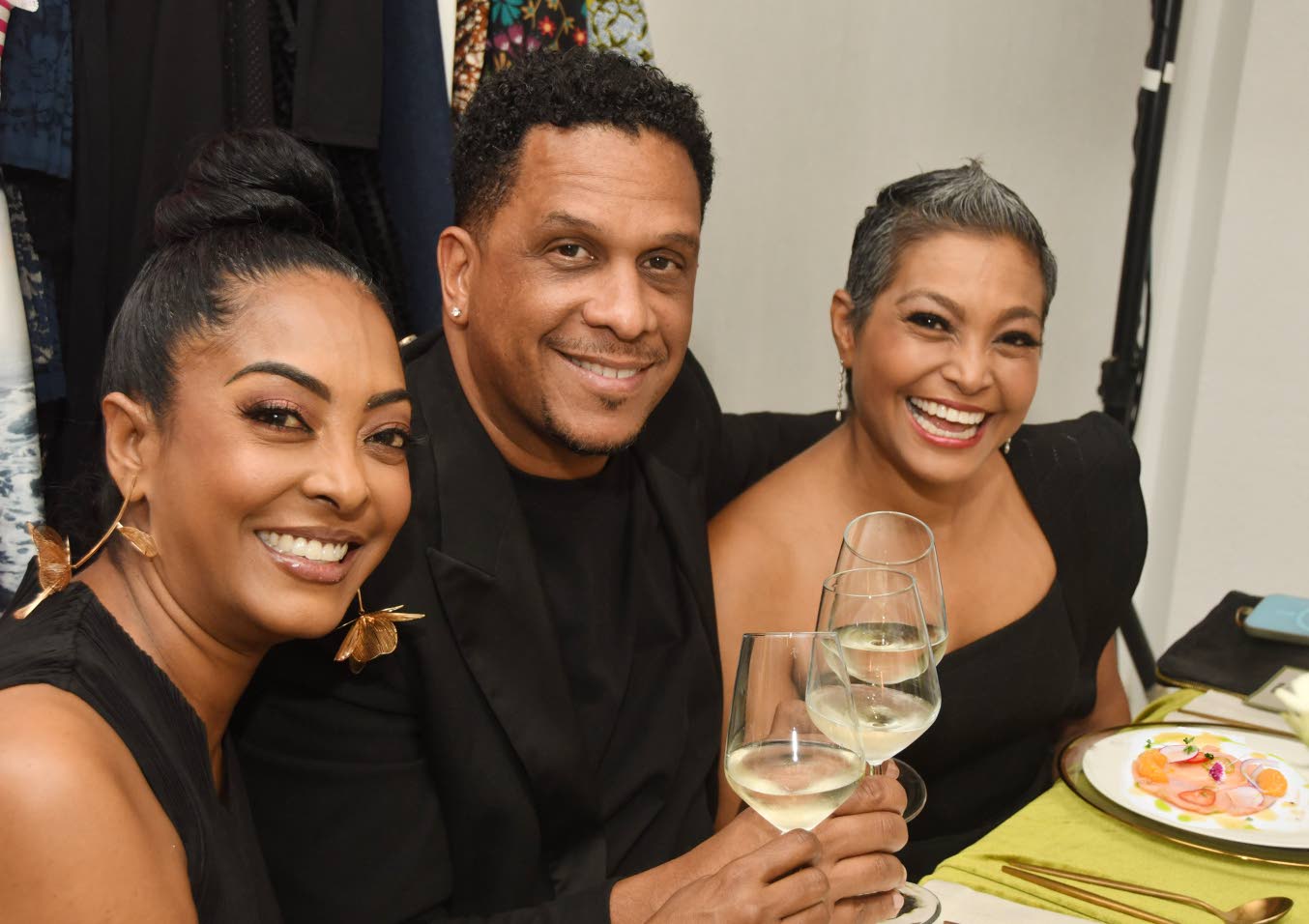Locale co-principal Kerry-Ann Clarke (left); Fyah105FM host and producer DJ Bambino and his wife, Puzzles by SG creator Shauna-Gaye Hart, raised a Fantinel Tenuta Sant’Helena Pinot Grigio toast during the second course. (Photo: Naphtali Junior)