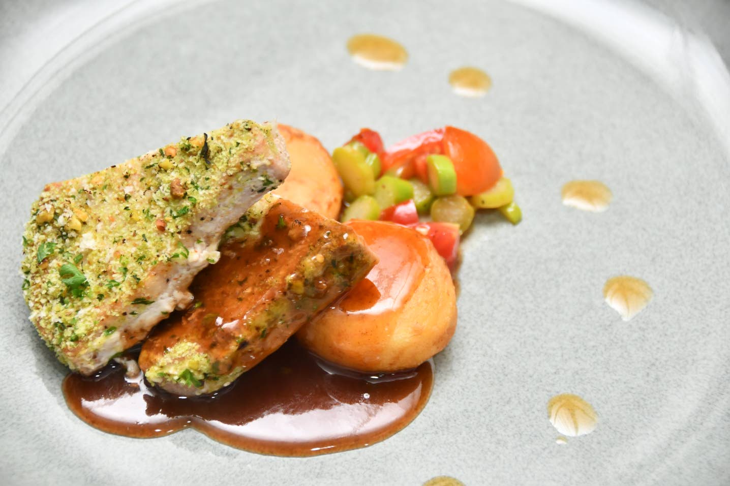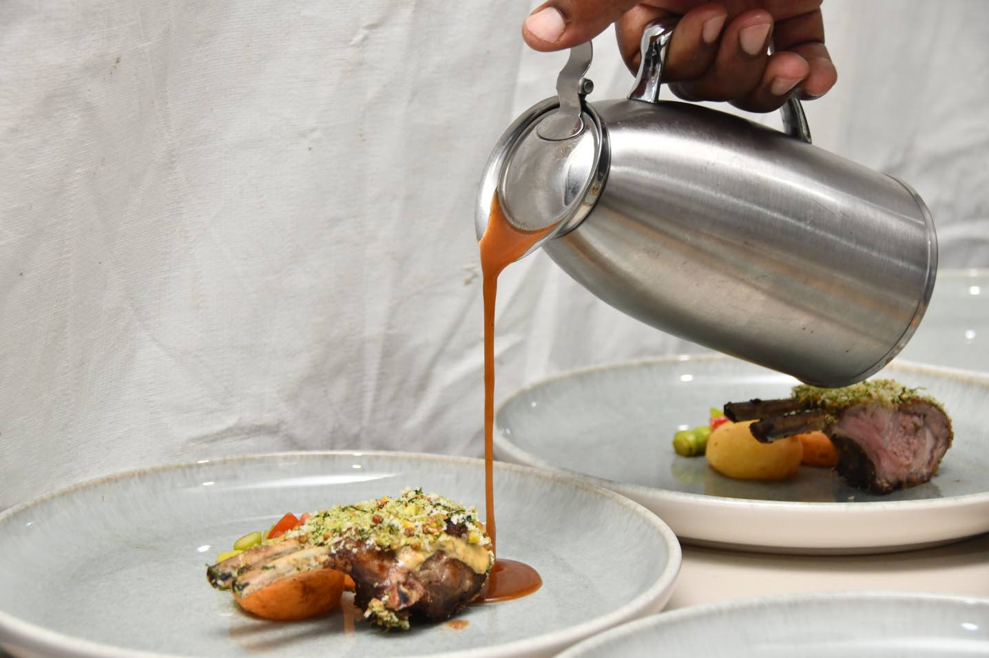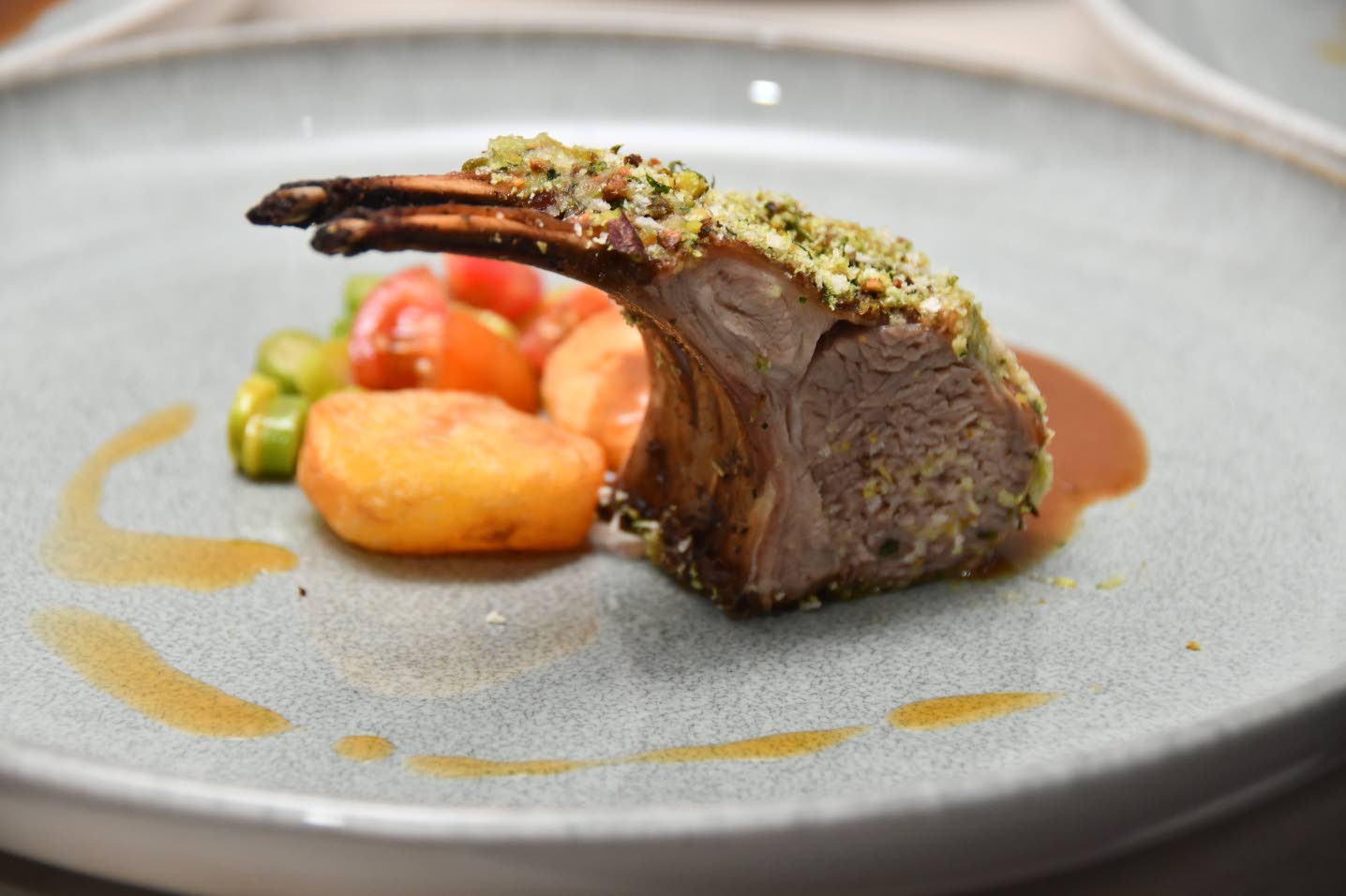 Jerk Smoked Beef Tenderloin and its alternative Jerk Rubbed Tuna Steaks were served with the full-bodied, well-structured Fantinel Collio Cabernet Sauvignon. Chef Green’s Pistachio Herb-Crusted Lamb elicited copious chef’s kisses! The Mediterranean-inspired herb-crusted rack of lamb married the rich, tender meat of lamb with the earthy, nutty flavour of pistachios complemented by the tart notes of a plum sauce. The final dish and its pescatarian alternative, Pistachio Herb-Crusted Swordfish was paired with the complex La Roncaia Refosco.