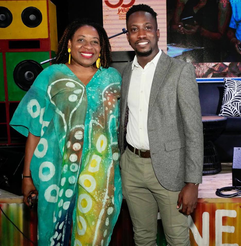 Journalist and event planner Janet Silvera, alongside Press Association of Jamaica’s Jevaughn Keyes, during Sunday evening’s celebration of Lloyd B Smith’s 50 years in media. (Photo: Philp Lemonte)