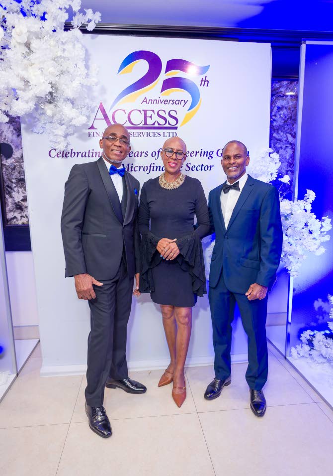 Minister of Finance & the Public Service Fayval Williams is flanked by the debonair CEO of Access Financial Services Hugh Campbell (left) and company founder and Executive Director Marcus James.Rahyme McKenzie