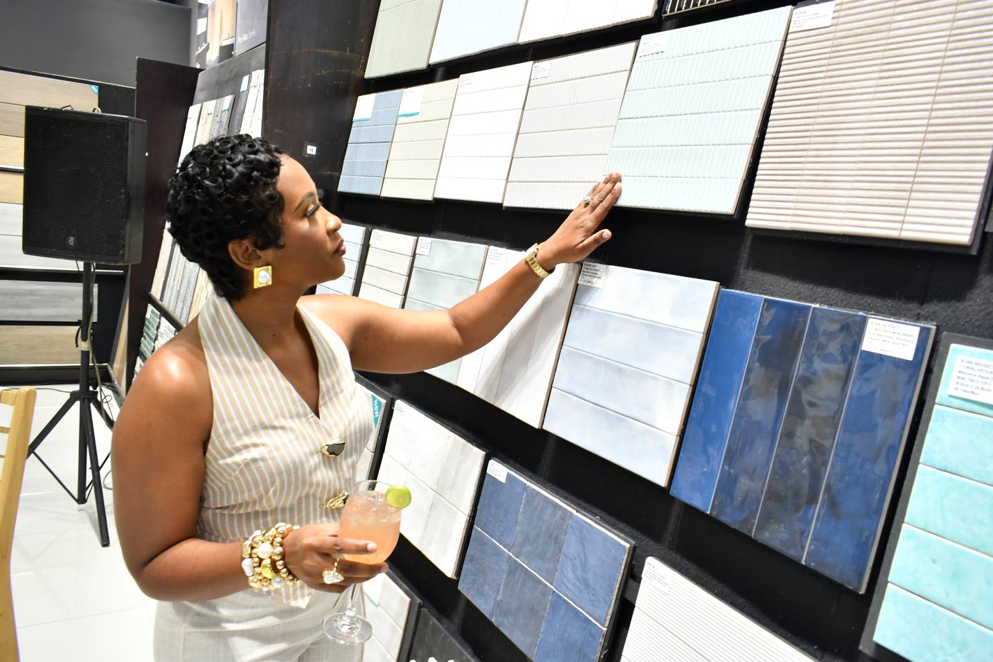 Formalities closed with a tour of the showroom and a glimpse of large- format tiles with different finishes allowing them to be used both indoors and out, a wide range of wall décor tiles, top-of-line bathroom faucets by Delta, and new slim Shaker kitchen cabinets which come in oak and white. There was, too, a wide range of trendy furniture and lighting to showcase as well as a chance to enjoy Chef Shea Stewart’s catering and cosy design vignettes created by Trudi Hamilton for Trudi Alexis Design Studio.