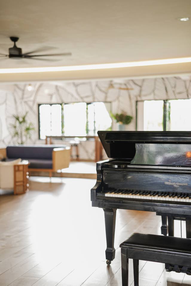 At one end of the lounge, a black grand piano remains from the original design adding a timeless note of sophistication. Its glossy surface reflects the natural light pouring through large windows, reminding guests that this is not only a space for lounging but also for cultural moments — whether intimate performances, casual gatherings, or quiet afternoons.