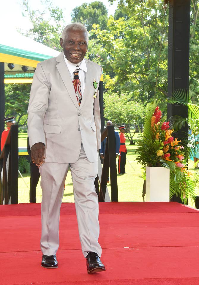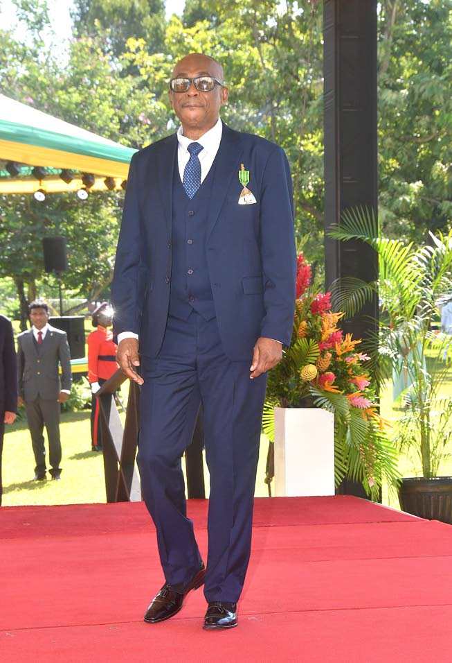 Owen Franklin George leaves the dais after being vested into the Order of Distinction. (Photo: Garfield Robinson)