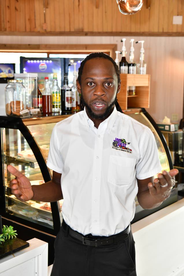 Leethan Grandison, reservations manager, Jamwest, outlining the best features about the space. (Photo: Aceion Cunningham)