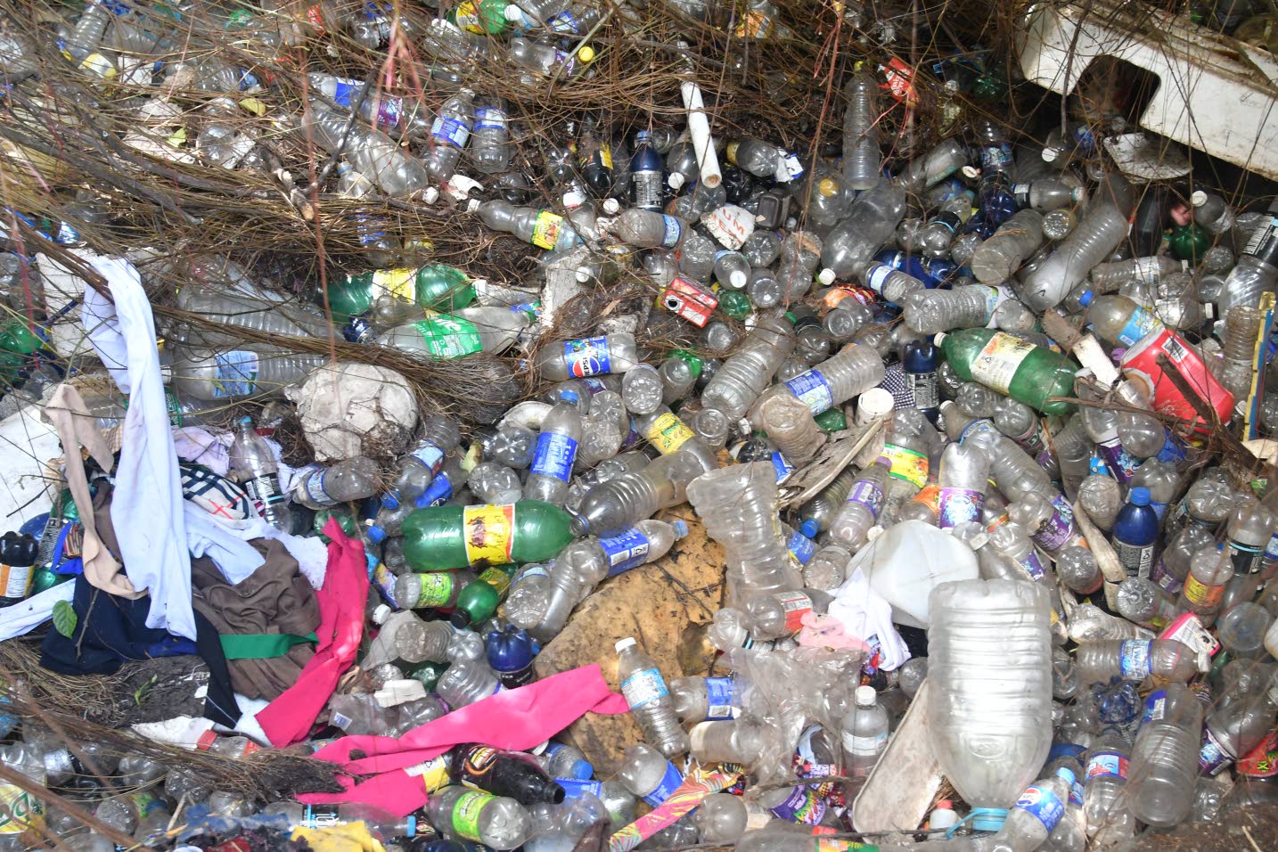 Plastic bottles trapped in a waterway in New Haven, St Andrew, are a contributing factor to frequent flooding in the community.