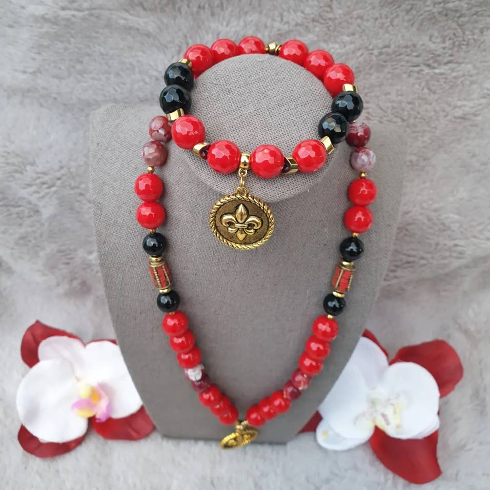 A statement set from The Stoic Wear, combining vibrant red gemstones with gold details for a bold yet elegant finish..