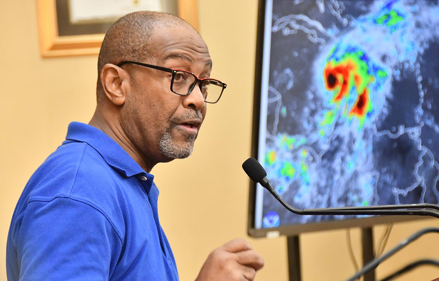 Meteorological Service of Jamaica Principal Director Evan Thompson addressing a special media briefing at Jamaica House on Saturday.Photo: Naphtali Junior