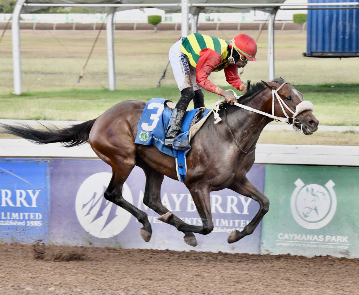 Jockey Robert Halledeen guides foreigner Dothraki to victory in the $1.25 million Vassel ‘Jolly Man’ Najair Memorial Trophy on Sunday, October 19, 2025. (Photo: Naphtali Junior)