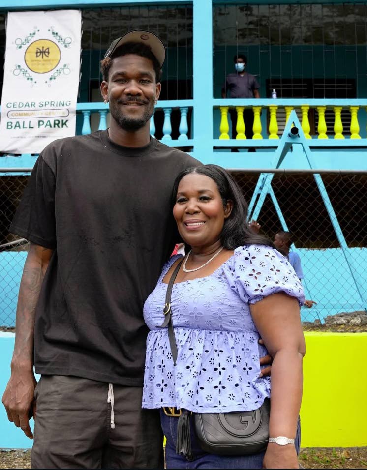 Los Angeles Lakers centre Deandre Ayton (left) and his mother Andrea Ayton, at the reopening of the Cedar Spring Community Centre in St Elizabeth in July 2025. Ayton has pledged $16 million towards the recovery efforts.