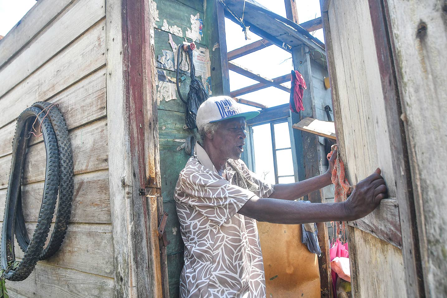 “You see this door, so I had to put it and this doorjamb hold me, and when I saw that I could go through I took my time and went through. [Eventually] I ran next door and they put me up,” he told the Jamaica Observer while demonstrating how he braced himself during the passage of the weather system last week.