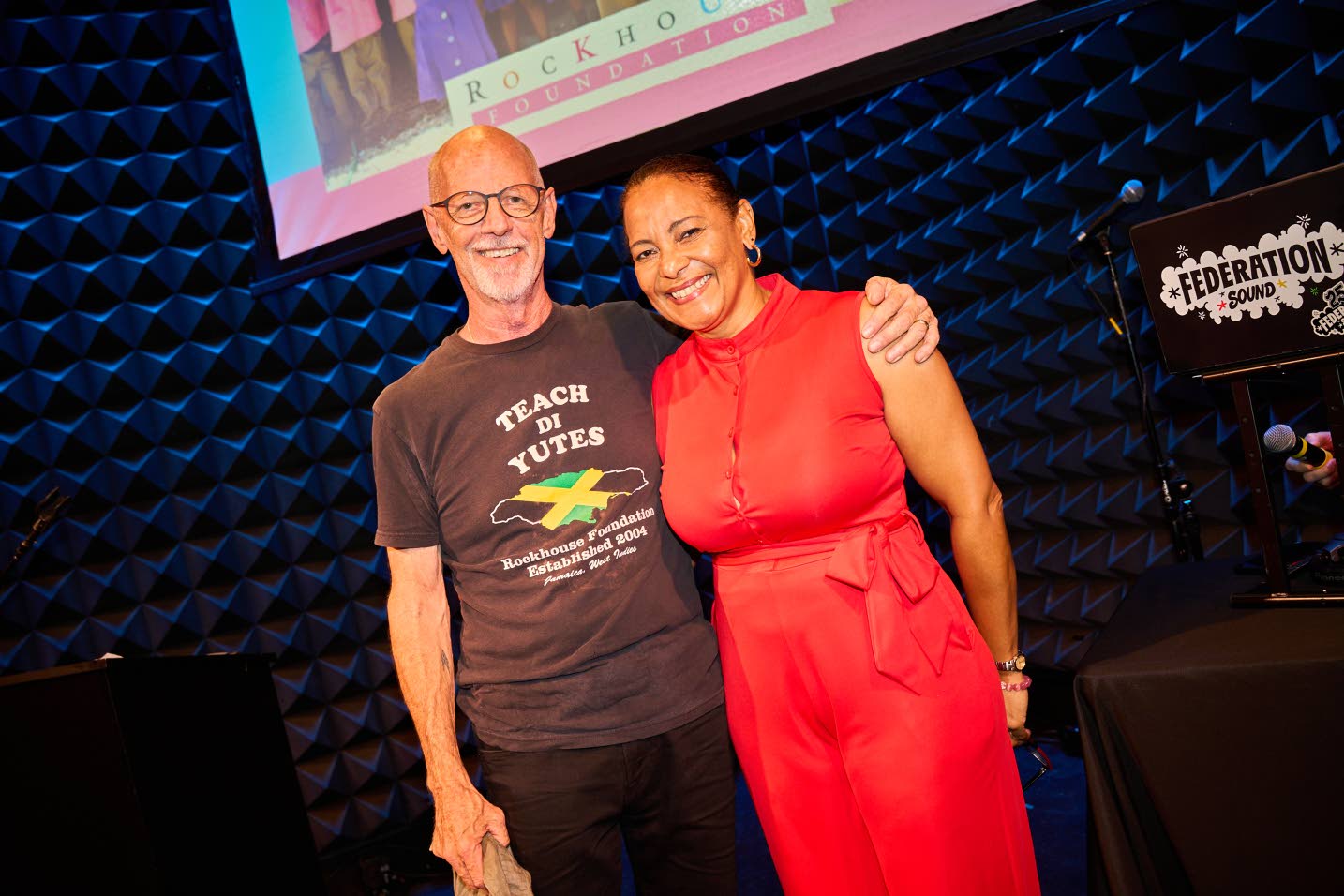 Rockhouse Foundation incoming President Anna Thwaites Wallace, and her father, former Minister of Education Ronald “Ronnie” Thwaites Courtesy of JLP Consulting