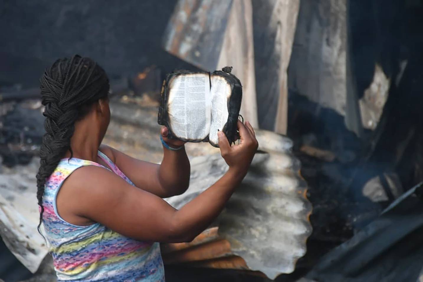The fire victim, who gave her name as Kim, was captured by Jamaica Observer photographer Garfield Robinson holding a semi-charred Bible that was retrieved from the rubble after firefighters extinguished the blaze. Despite losing everything in the fire, she’s determined to pick herself up, as she told the Observer team that, “Once there is life, there is hope.”