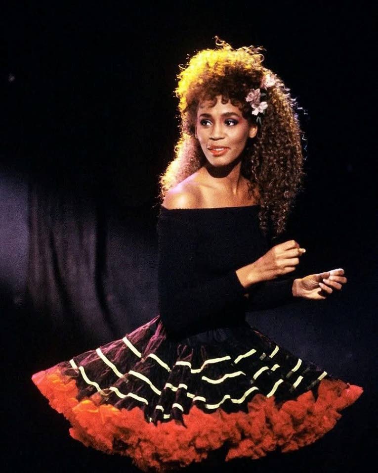 Winnie Harlow as Whitney Houston on the set of her I Wanna Dance with Somebody music video, 1987.Jamie Bruce