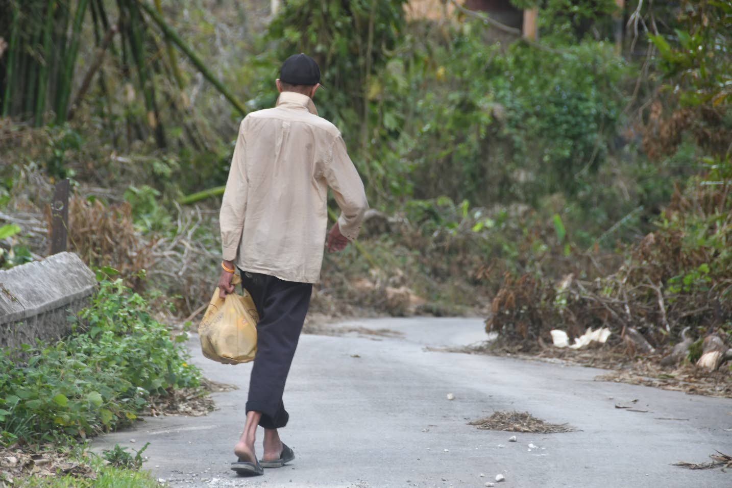 This elderly resident of Retrieve in Hanover is seen walking back home after collecting a hurricane relief package in the neighbouing district of Jericho on Wednesday.