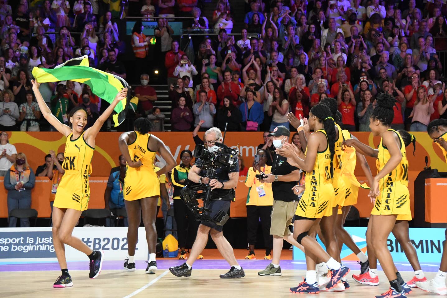 Jamaica’s Sunshine Girls celebrate after their semi-final win over New Zealand during the Commonwealth Games in Birmingham, England, on August 6, 2022. Photo: Observer file