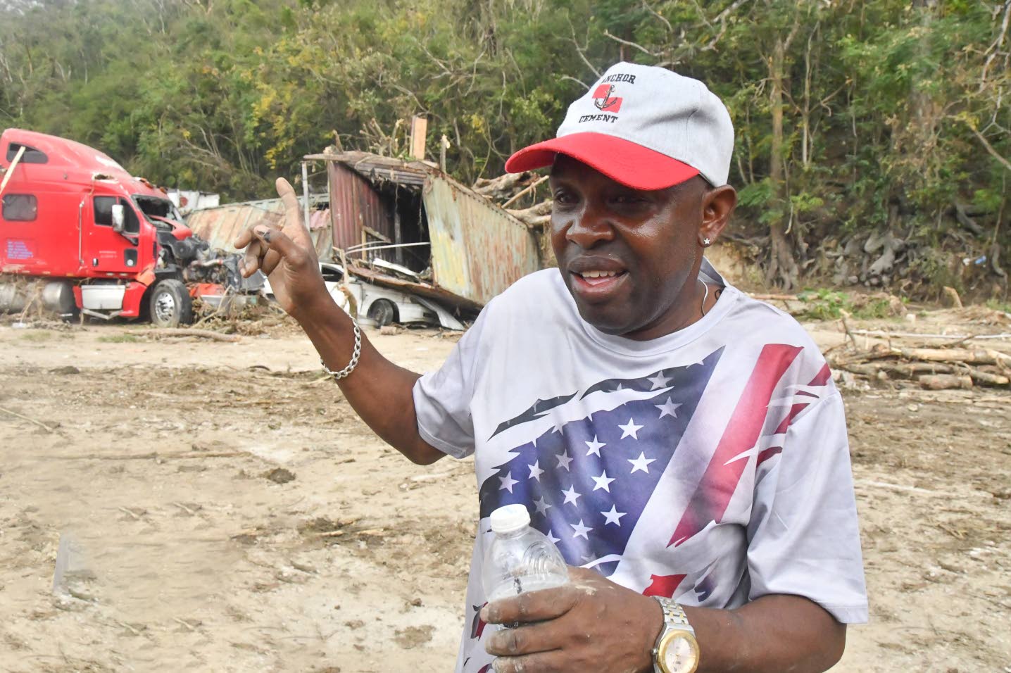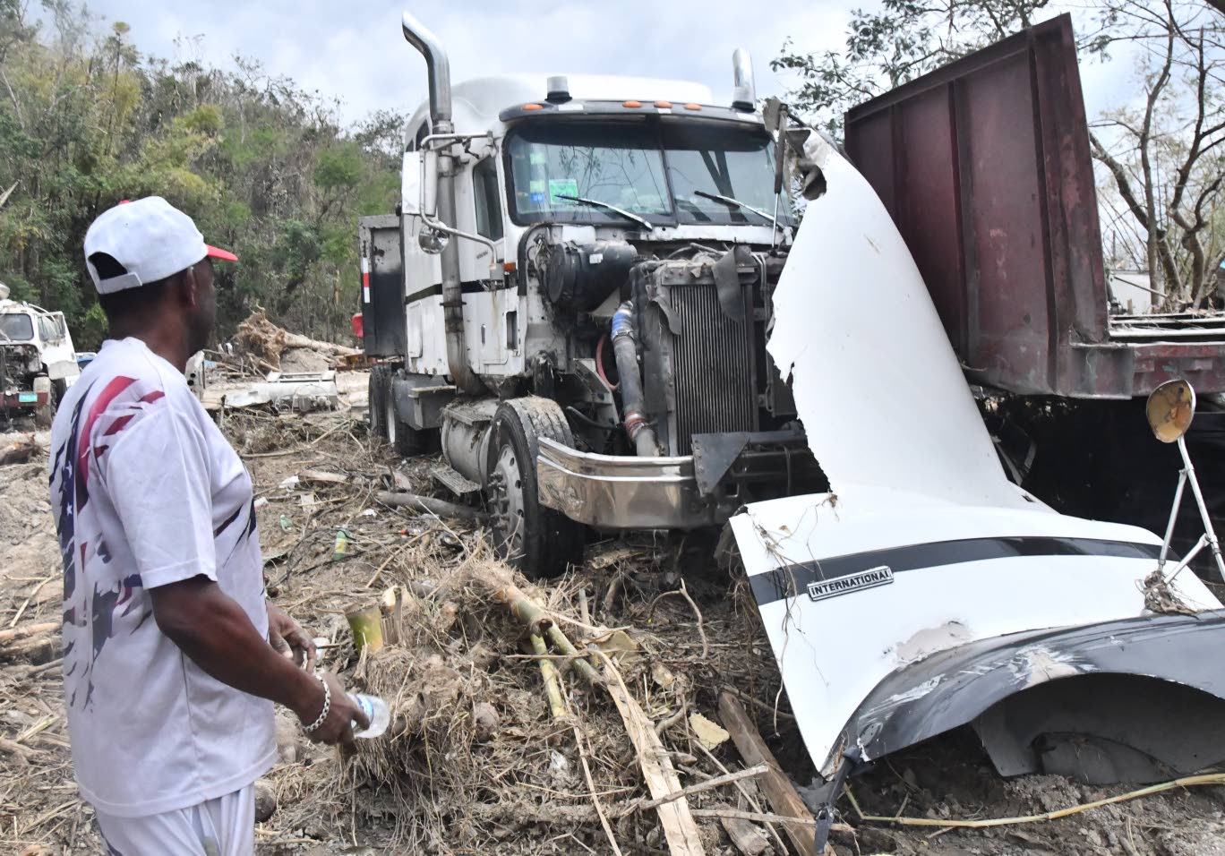 Clyde Maxwell, the operator of Maxwell Trucking in Irwin, St James, looks at the damage sustained to his garage, where several trucks were covered with debris due to heavy flooding as a result of Hurricane Melissa, while others were swept away in a river. (Photos: Naphtali Junior)