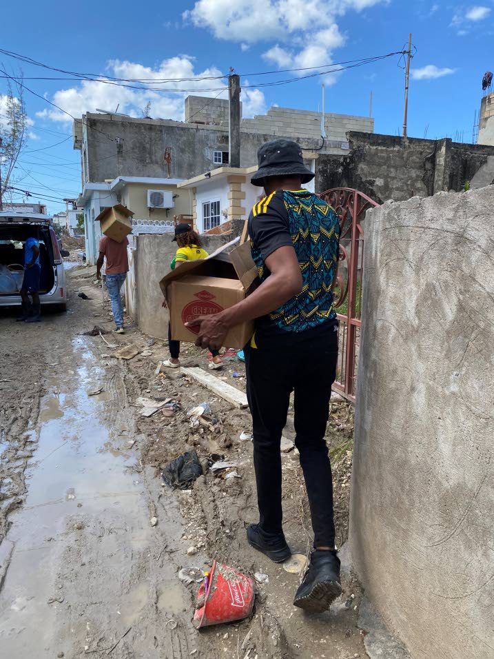 Andrew Dixon makes his way to Catherine Hall in Montego Bay, distributing cleaning supplies to residents whose houses were flooded during Hurricane Melissa Akera Davis