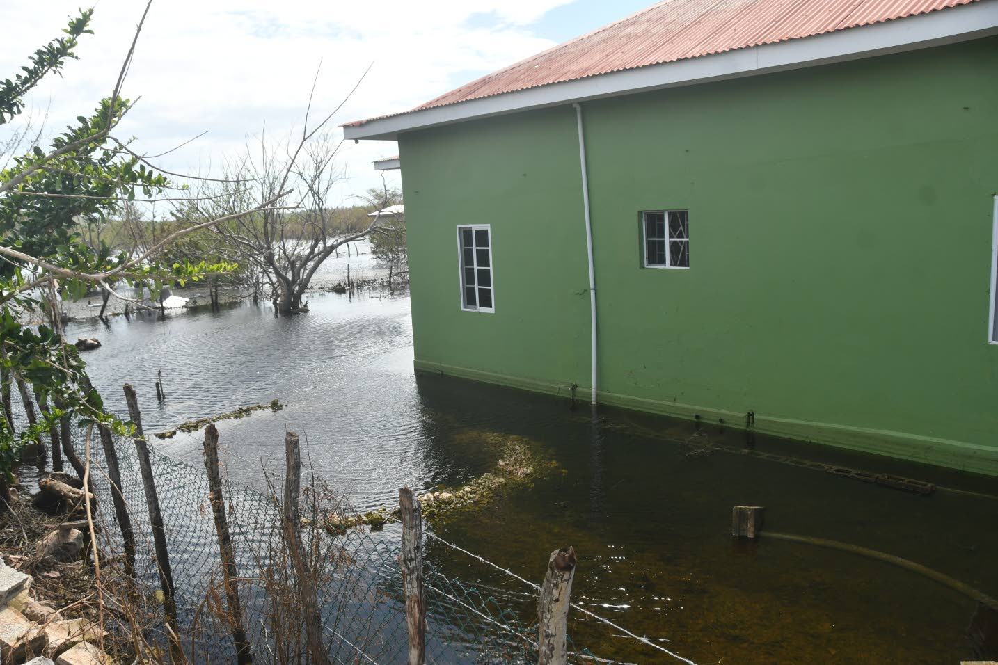Water surrounds this house in Great Bay near Treasure Beach in St Elizabeth on Sunday. Garfield Robinson