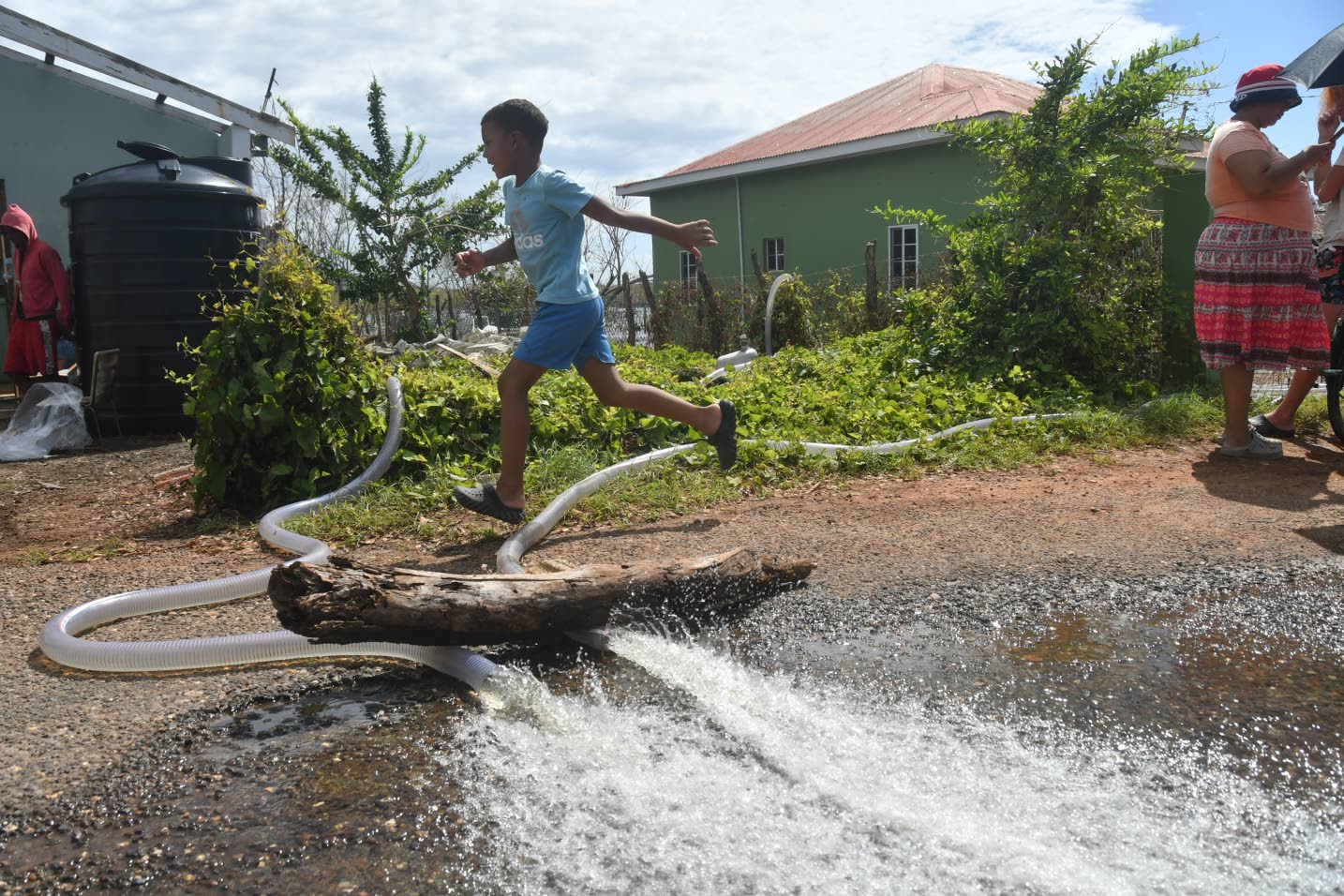 This little boy jumps over the waste water released by the reverse osmosis machine in Great Bay near Treasure Beach in St Elizabeth on Sunday. Garfield Robinson