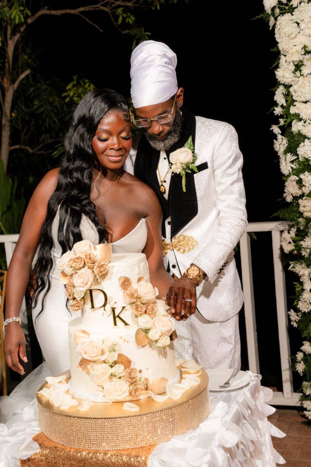 The exchange of wedding vows flowed seamlessly into the reception, beginning with a banquet provided by Junior Francis Catering. Toasts to the newly-weds, the cutting of the two-tiered rum sponge and fruitcake, courtesy of Tropical Weddings Jamaica, were followed by the newly-weds’ first dance to Celine Dion’s Because You Loved Me.