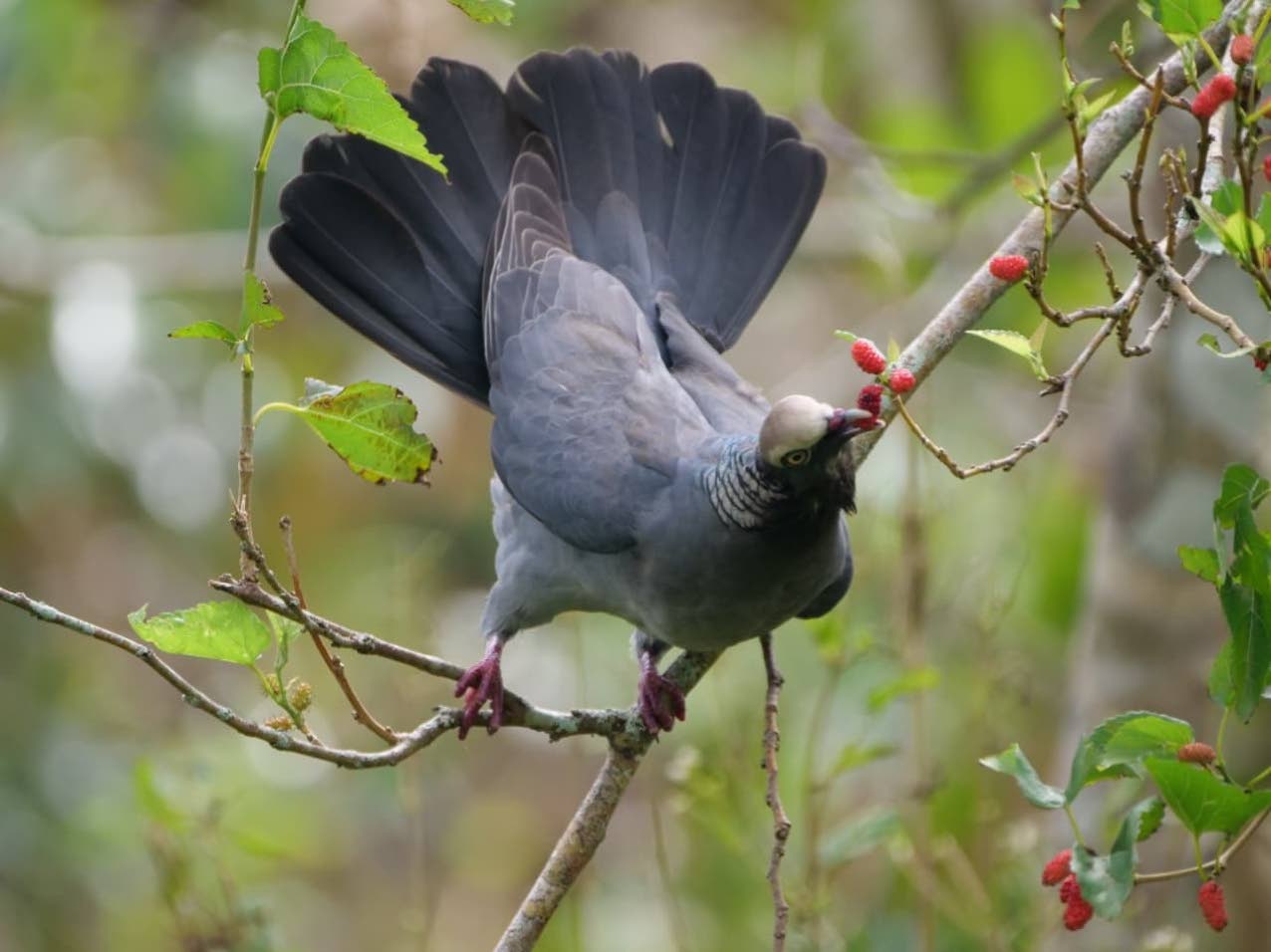 This white-crowned pigeon is captured in George’s Valley, Manchester, eating mulberries after the passage of Hurricane Melissa. (Photo: Britton Wright)