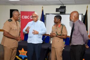 CIBC Chief Executive Officer Mark St Hill, with members of the Barbados Defence Force and Barbados health sector, as the bank commits US$250,000 to the field hospital deployed to Jamaica. (Photo: Brooks LaTouche Photography)