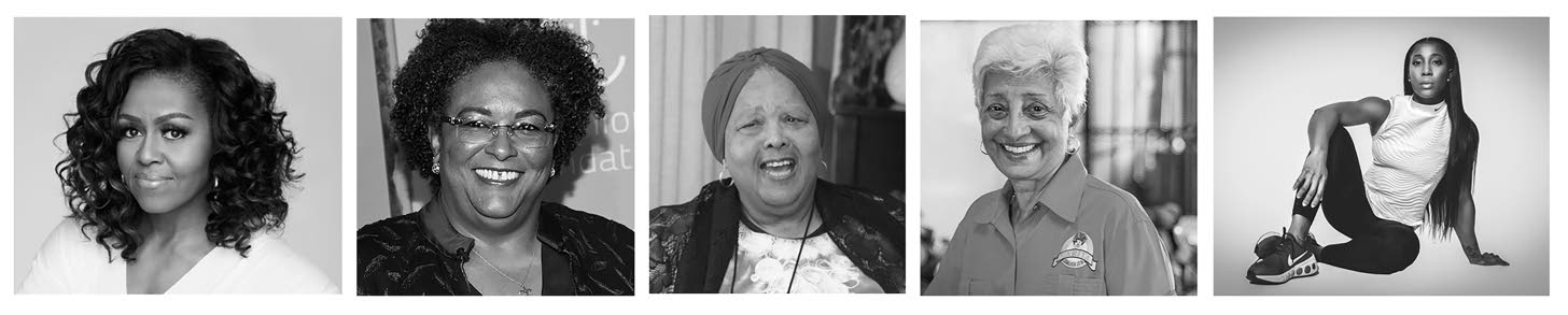 Kathryn Silvera says she would love to knock heads with five female icons: (from left) Michelle Obama, Mia Mottley, Louise “Miss Lou” Bennett-Coverley, Rita Hilton, and Shelly-Ann Fraser-Pryce.