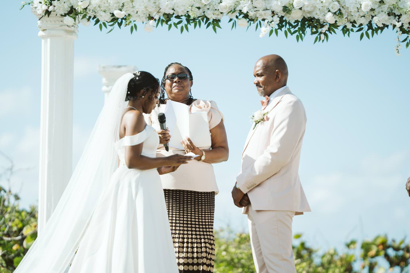 Under the guidance of Rev Karen Kirlew, Demesha and Camilo exchange vows. (Photo: J Royal Productions)