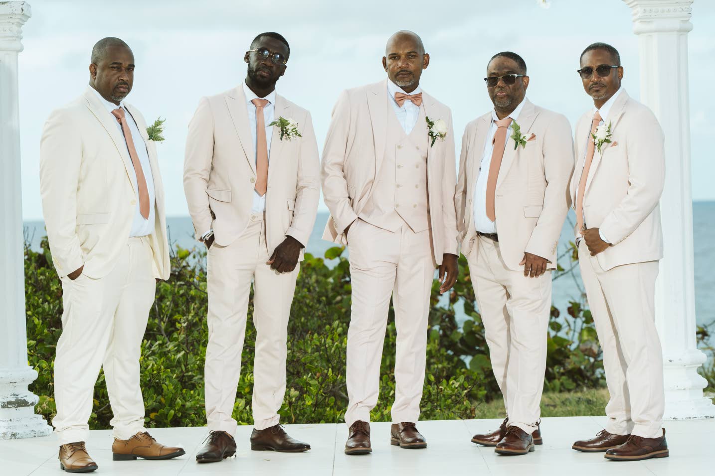 Supporting Camilo (centre) on his special day are his groomsmen (from left) Omar Dennis, best man Greg Crossfield, Duayne Quallo and Hugh Small. (Photo: J Royal Productions)