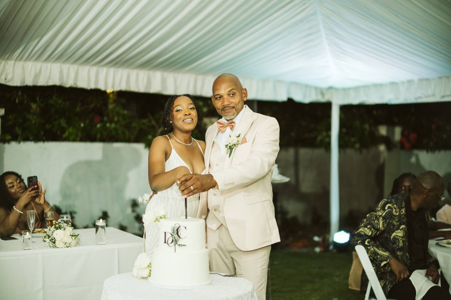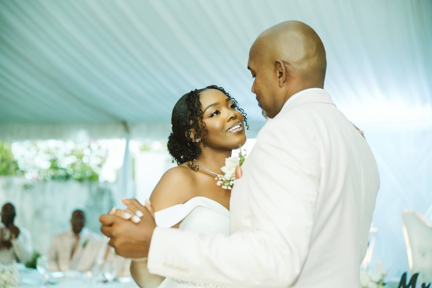 The celebrations continued at the reception where Bluez Fusion Cuisine provided catering. Following dinner, the celebration moved to traditional formalities, including toasts and the cutting of a two-tiered triple vanilla and strawberry confection by Ole Mack’s Panaderia. The newly-weds later opened the dance floor to Mortimer’s Lightning. They honeymooned at the Couples Tower Isle resort in St Mary.