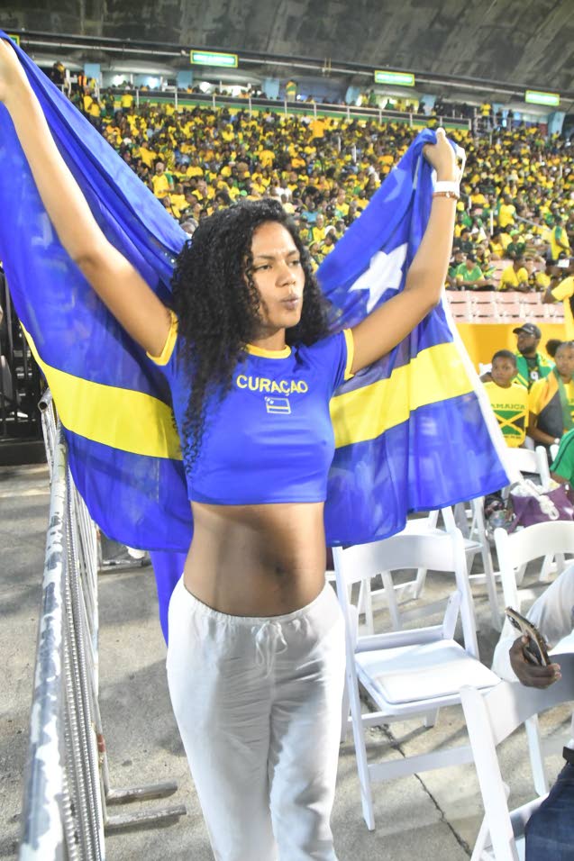 This Curaçao supporter is enjoying herself at Tuesday night’s World Cup qualifier against Jamaica at the National Stadium in St Andrew.