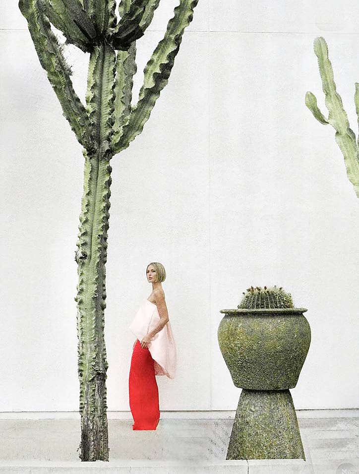 Humble Abode Brother Vellies Creative Director and Fifteen Percent Pledge founder Aurora James slips into a Bode dress to be lensed by Kate Davis-Macleod inside her Hollywood Hills cottage for the 50th issue of Vogue Living Netherlands. (Photo: Kate Davis-Macleod)