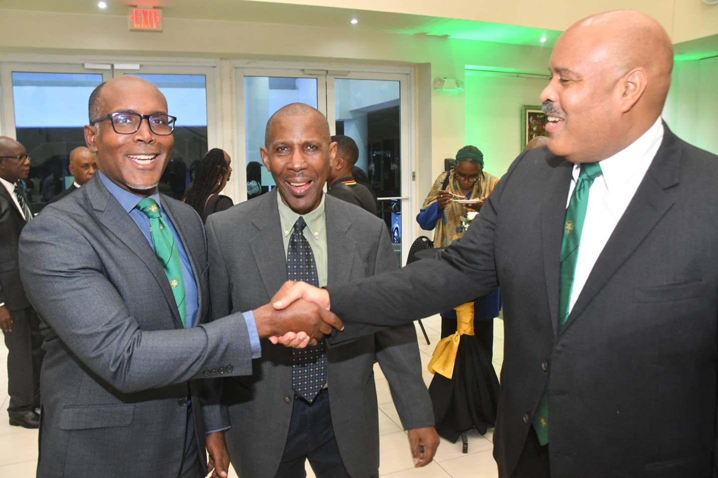 Here, Sir! Valuation surveyor Daniel Tulloch-Reid (left) caught up with his brother, Caribbean Institute for Health Research Director Prof Marshall Tulloch-Reid (right) and Westminster Consulting Group director Emile Finlay. Garfield Robinson
