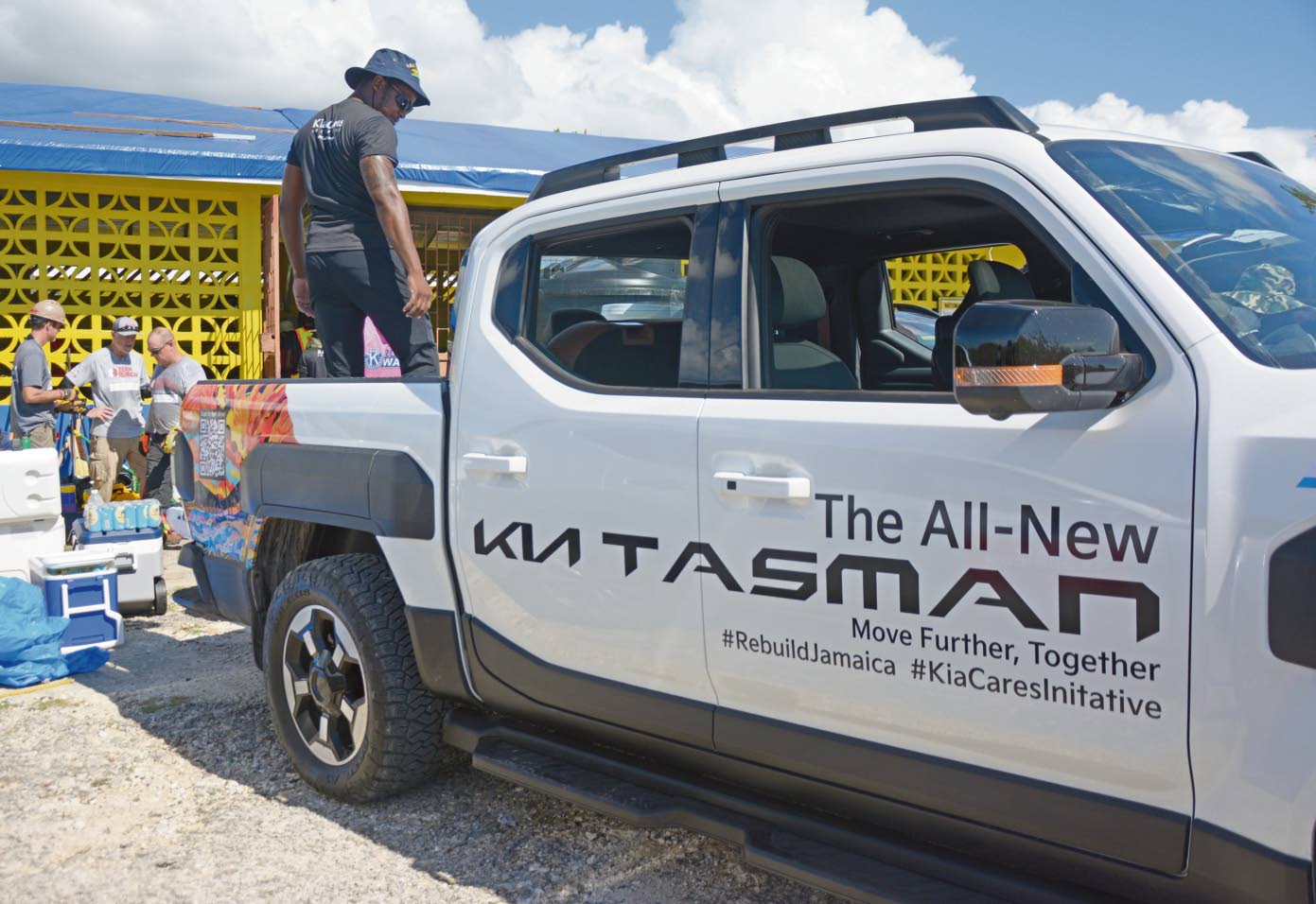 In partnership with Sandals Foundation and Wisynco Group Limited through their M-POWA drink brand, around 55 Kia team members arrived in a convoy, led by the all-new Kia Tasman pickup, at the school to help with the rebuilding efforts. The vehicle is the brand’s first-ever pickup.
