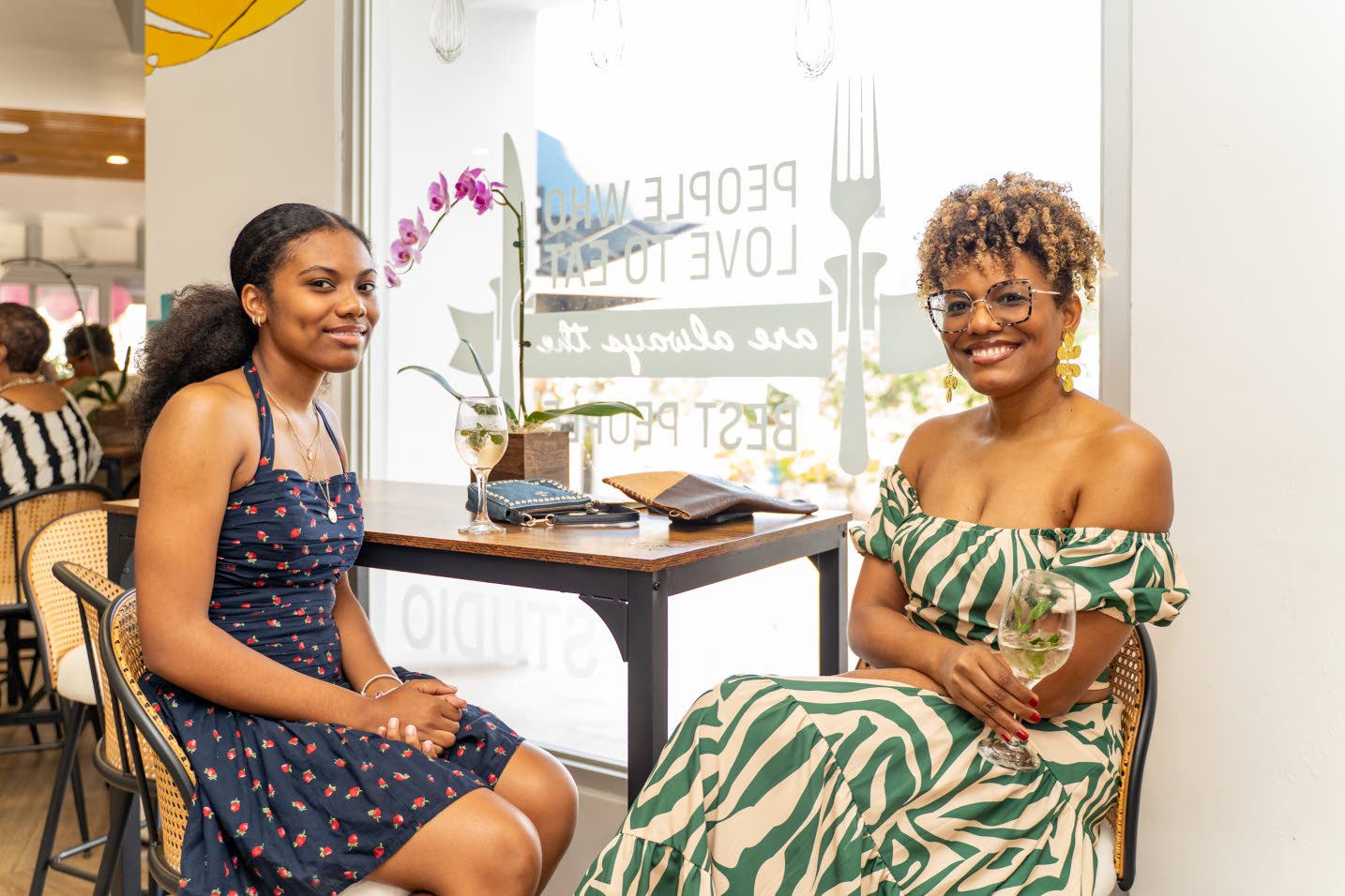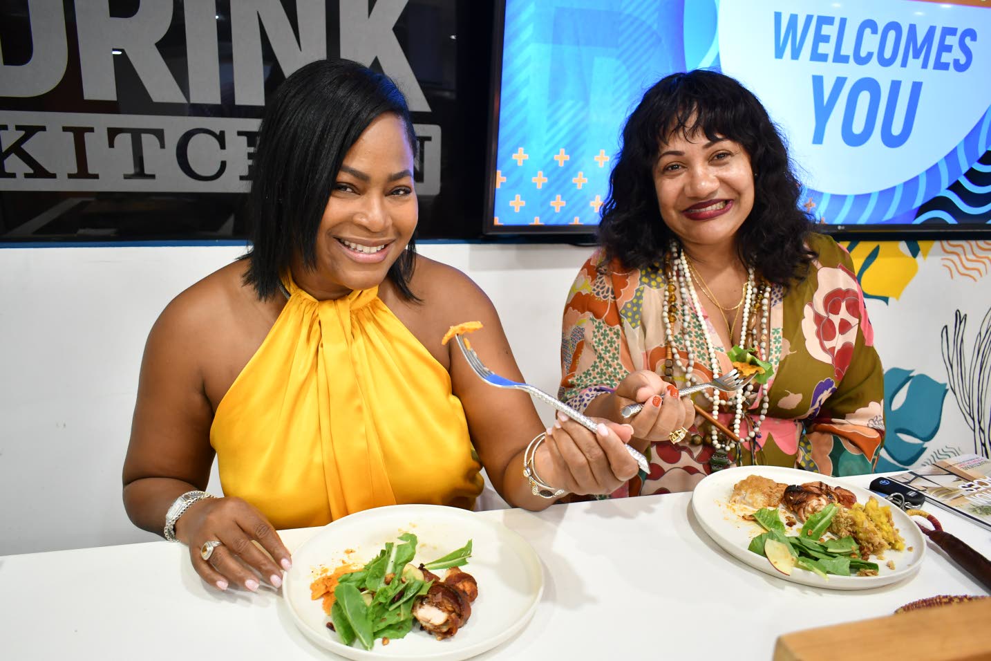 Mayberry Investments Ltd AVP – Sales Karen Hall (left) and impact manager at Iprint Digital Ltd Sophia Somers Williams tucked into brunch. (Photo: Karl Mclarty)