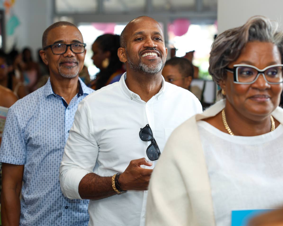 Hutchinson had three pieces in the event: two 12” x 15” digital art pieces in the silent auction, and a piece from her Waterfront Boys series in the live auction. All three pieces were sold, with The Waterfront Boys going to bidder #49 Dr Suzanne McDonald-Fowles. Bidder #35, Shunelle Nevers, Caribbean regional advisor at The Nature Conservancy, walked away with a 2016 George Rodney still life. Dr Toni Barnes, who shared bidding paddle #10 with her mum Moya Leiba-Barnes, secured Owen Beckford’s Woman Playing Guitar. Husband-and-wife bidders, Dr Vernon DaCosta and Dr Michelle Bailey-DaCosta, missed out on a weekend for two at any Sandals Resorts in Jamaica (a last-minute transfer from the silent to live auction), but successfully bid on a Flow iPhone 17 Air and a Gene Pearson Madonna black clay bust, respectively.