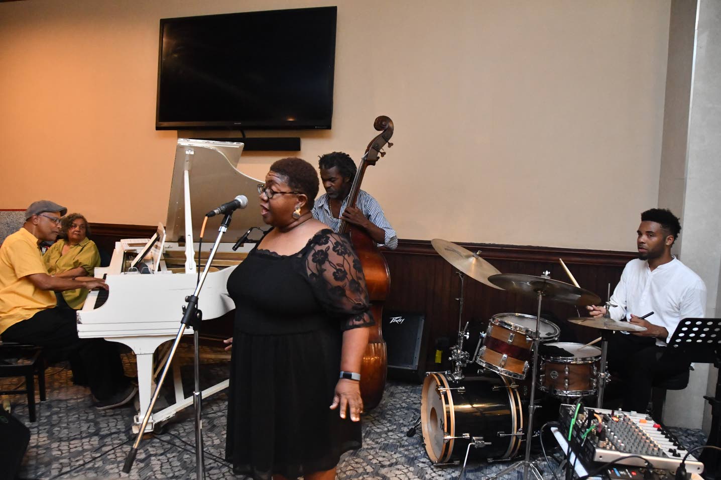Getting In The Groove Vocalist Sharon Crawford delivered a captivating set accompanied by the Orville Hammond Trio — featuring pianist Orville Hammond (left), percussionist Clayon Samuels (right) and bassist Leon Duncan. Naphtali Junior