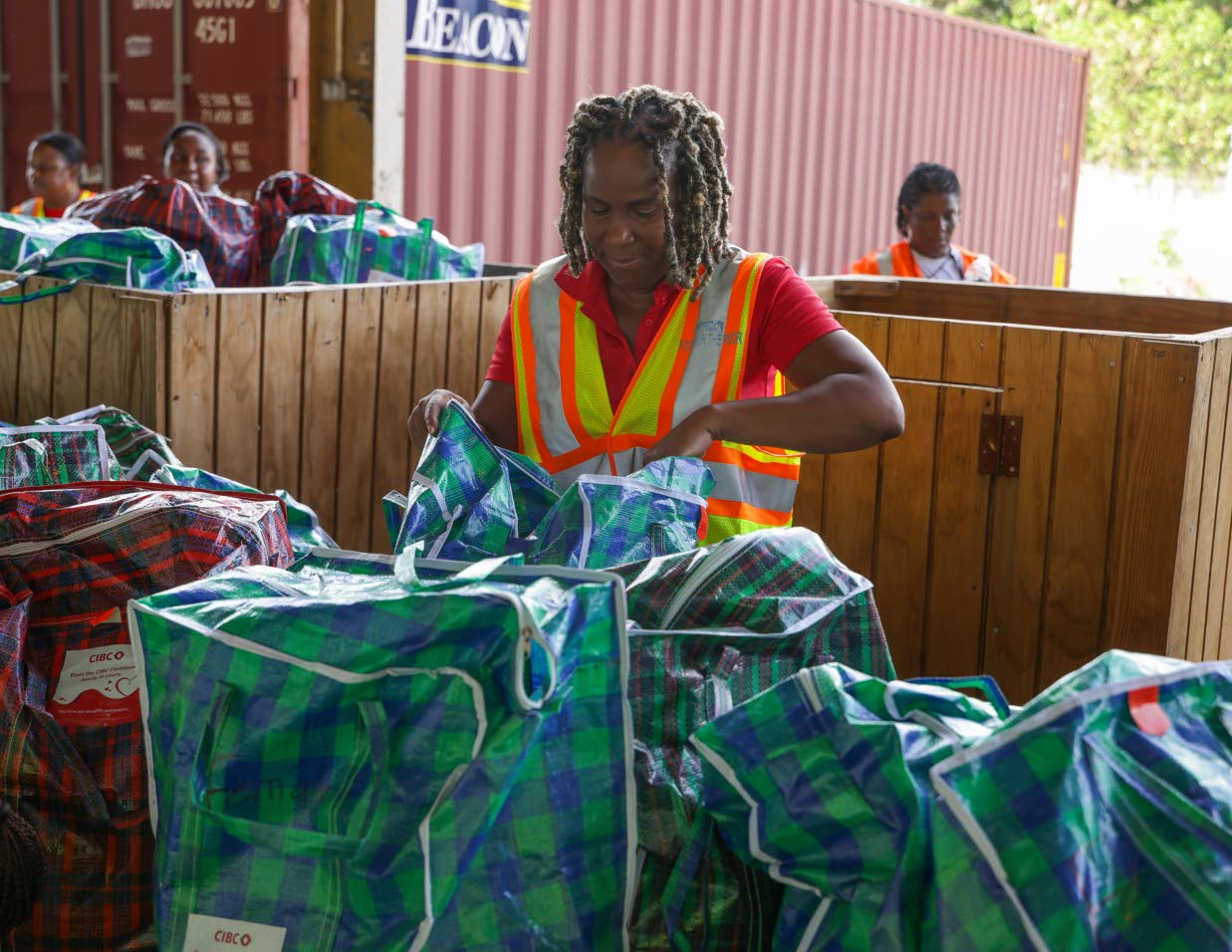 A small act, but a meaningful one: Marsha Cole-Silence, warehouse supervisor, Scotiabank, prepares essentials for families starting the journey back to normal..