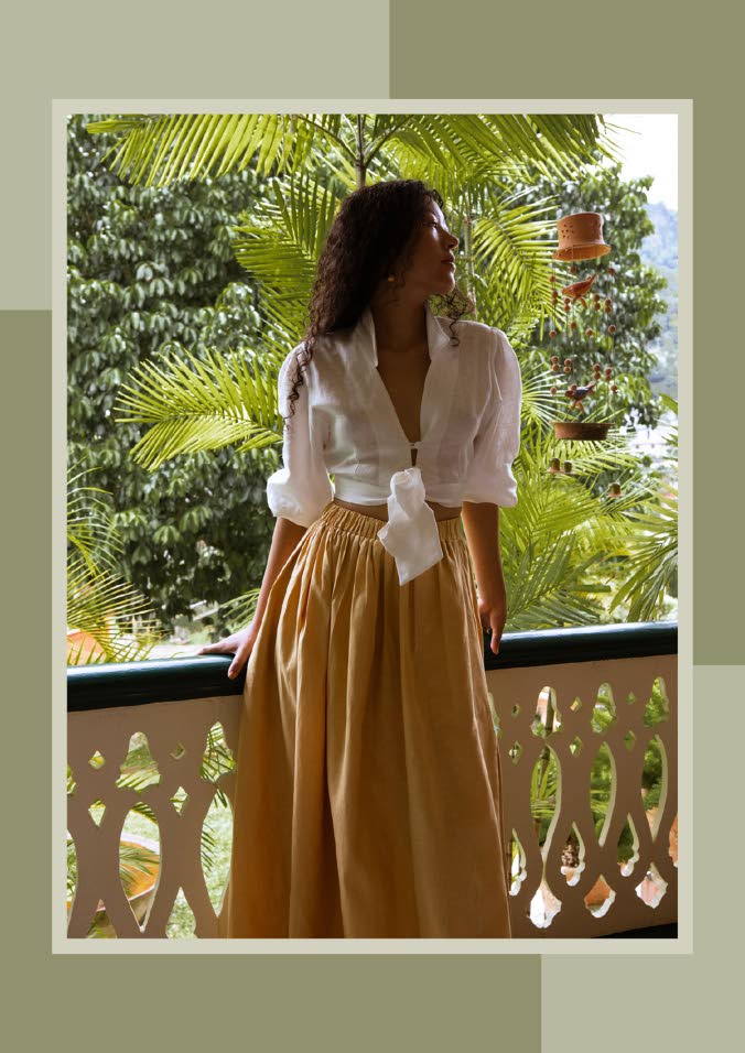 The collection draws on the spirit of nature as experienced in the haze of the Caribbean. The warmth of late afternoon, the stillness of a meadow, the playfulness of a breeze: These are the feelings stitched into each piece. There is softness here, even whimsy, but always balanced by a subtle structure that grounds it, an ease that never loses its form,” she shares.