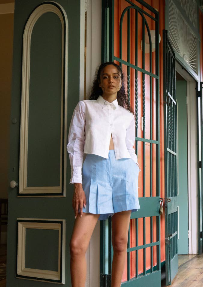 CLOUD: Ruched Shirt and FLORA: Shorts (foreground), RIVER: Peplum Shirt and COVE: Walking Shorts (Photo: Jordan LHR | The Perspectivs)