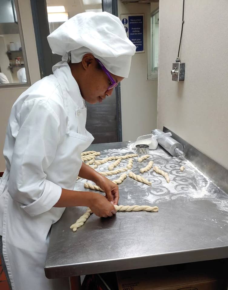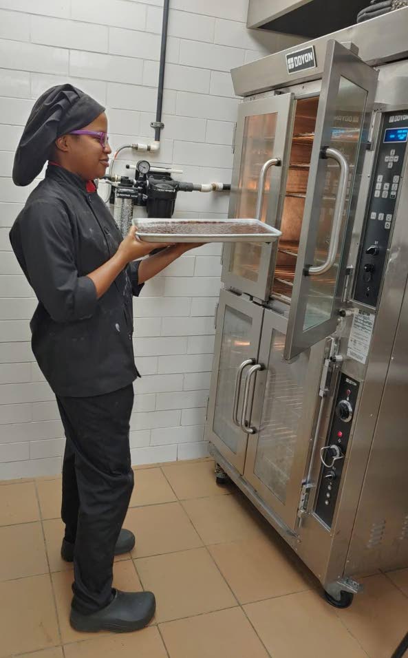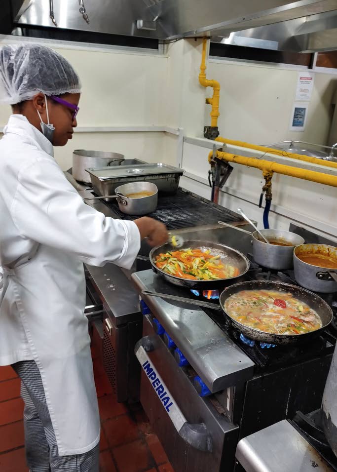 Saltfish from Norway Scholarship recipient Jolie-Alexis Brown focuses on sautéing vegetables in the kitchen..